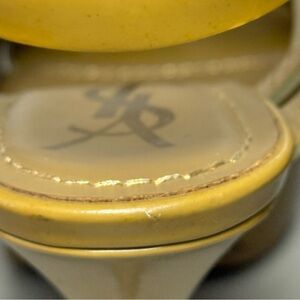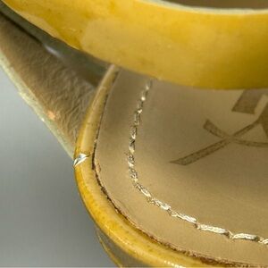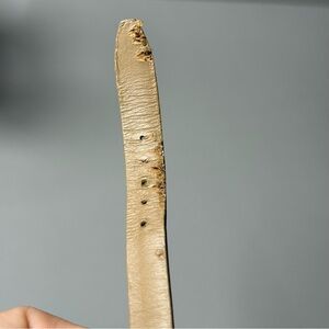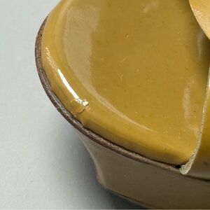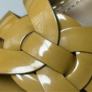Color: dark beige or tan patent leather