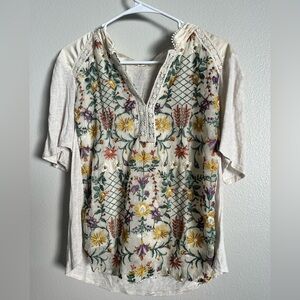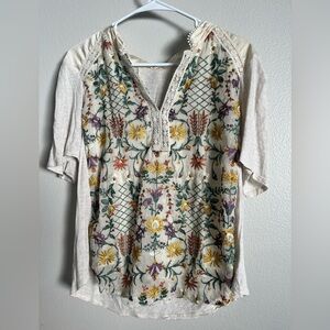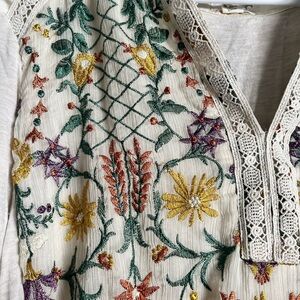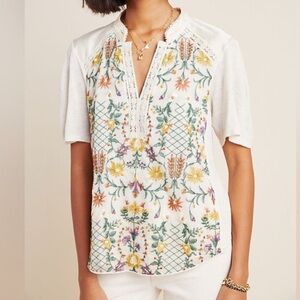 Chic white blouse with vibrant floral design. Perfect for versatile styling.