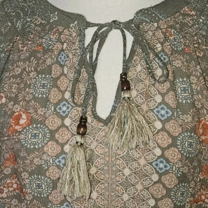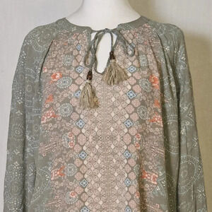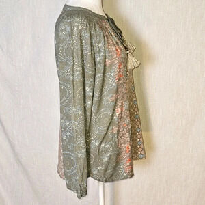 This Mason & Belle blouse is a perfect addition to your wardrobe. The bohemian style tops with tasseled and embroidered accents are perfect for any occasion, be it travel, party/cocktail or casual wear. The blouse is made of lightweight rayon material and is suitable for all seasons. It has a pullover closure, long bell sleeves, and a multicolor paisley pattern that adds a colorful and hippie vibe to your outfit. The blouse is available in size M and is a regular fit.