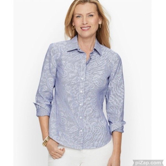 TALBOTS Stripe & Paisley Shirt Size Petite XL 100% Cotton