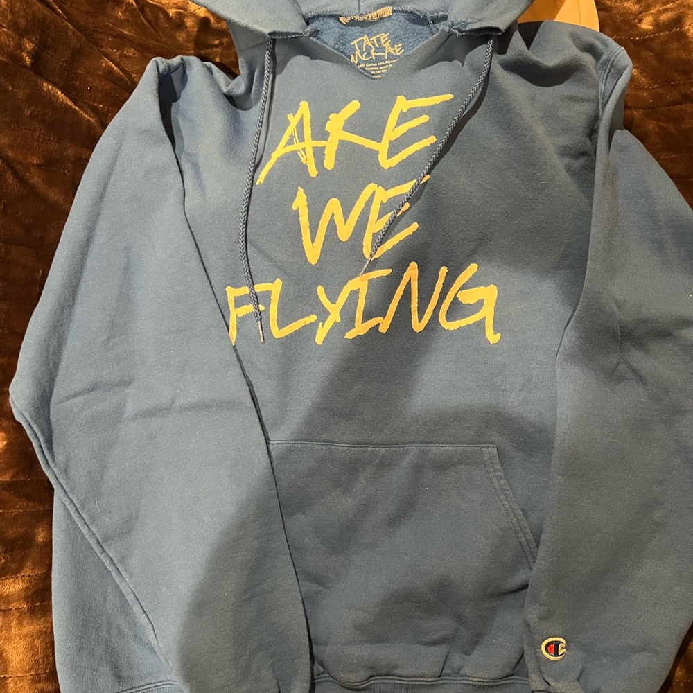Tate McRae Concert hoodie from either 2023 or 2024. Barely used. I did cut the notch by the hood just for more comfort. It’s a gorgeous blue with white words. Has champion logo on the sleeve