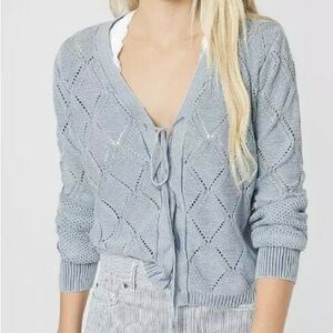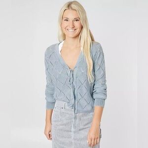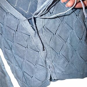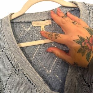 Stay cozy and stylish with this light blue women's sweater. Perfect for any occasion.