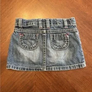 Stylish denim skirt for kids featuring colorful accents. Perfect for casual outings.