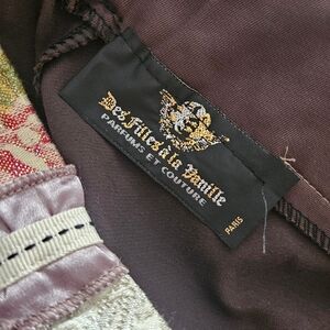 Des Filles A La Vanille skirt featuring a patchwork design. Has an asymmetrical hem. Had belt loops but not sure if there's a belt that's missing from the skirt itself. I purchased it without a belt. New with tags. This is a euro/French brand, harder to find in the US. I love this skirt, i just haven't been able to figure out how to incorporate it with my style.