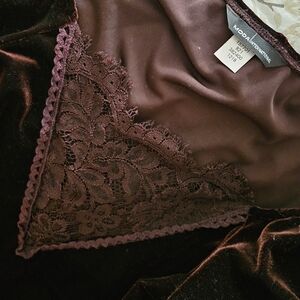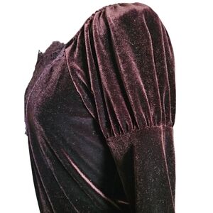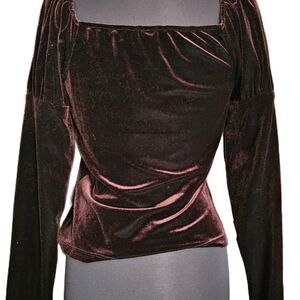 Medieval revival, Brown velvet blouse. Sleeves are puff sleeve with elastic to cinch around arm. Deep sheer lace V-neck.