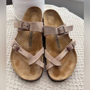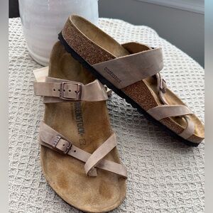 Extremely comfortable crisscross straps. The Mayari sandal takes on a distinctly traditional style with oiled leather, designed to give each pair a unique finish. All of this rests on an original contoured footbed for ultimate support. Please note: the sandals are almost new and in excellent condition. See all photos for details.
