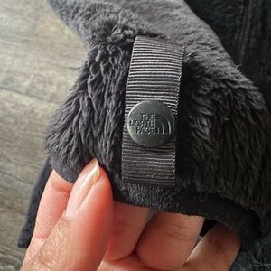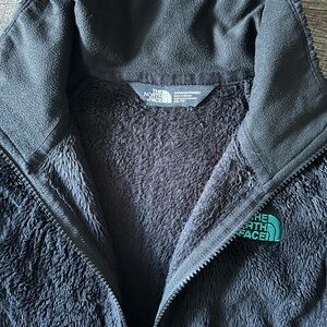 Soft charcoal fleece pullover by The North Face. Features a textured design and branded button detail.