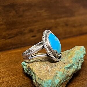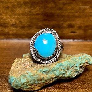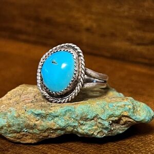 Native American Genuine Turquoise Old Sterling Silver Ring Size 6.5