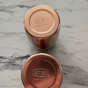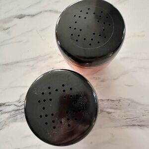 Vintage West Bend Aluminum Salt and Pepper Shakers are a set of retro-inspired kitchen tools from the mid-century modern era. Made of durable aluminum with rose pink accents and black lids, these shakers are a charming addition to any collection. The set includes both a pepper shaker and a salt shaker, making them practical and stylish for seasoning dishes. The West Bend brand ensures quality and nostalgia for those who appreciate vintage kitchen decor.