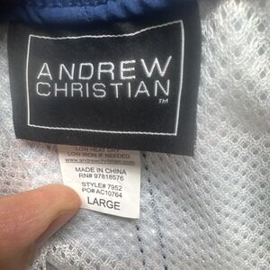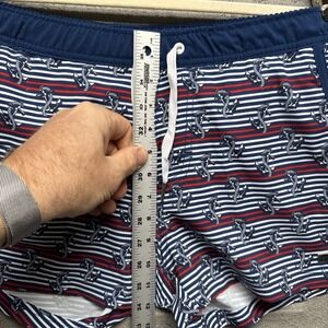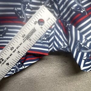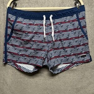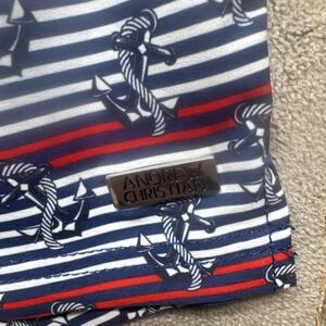 Bold and beach-ready, these Andrew Christian swim trunks feature a red, white, and blue anchor stripe print with signature flair. With a supportive cut and drawstring waist, they're designed to stand out from sand to street.