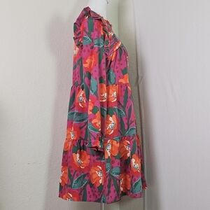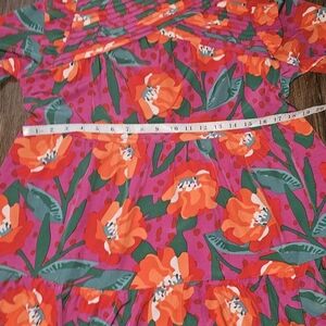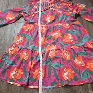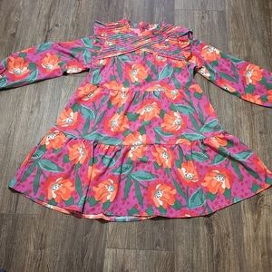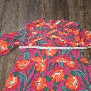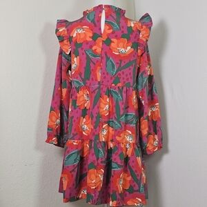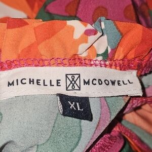 This beautiful Michelle McDowell Tilly dress in size XL is perfect for any occasion. The dress features a high neck, long sleeves, and a pullover closure. The knee-length dress is made of polyester and has a floral pattern with pleated and ruffle accents.