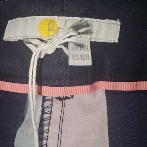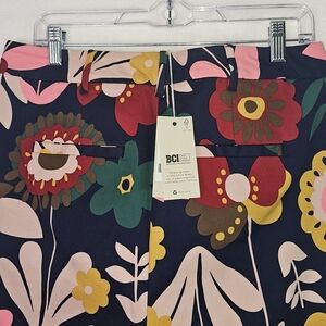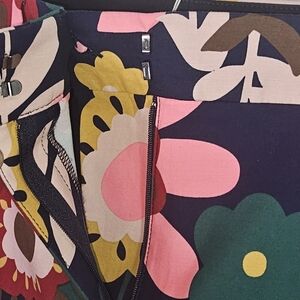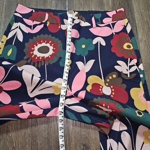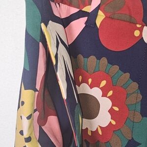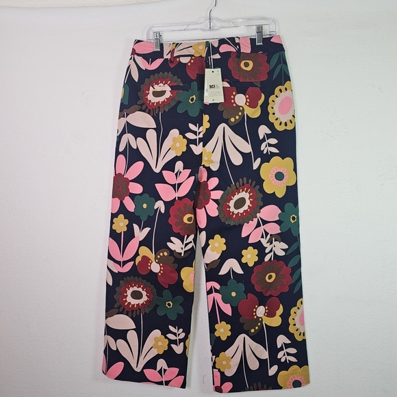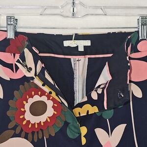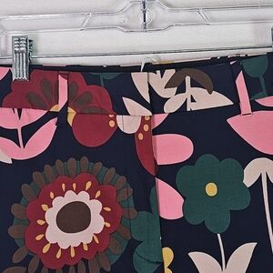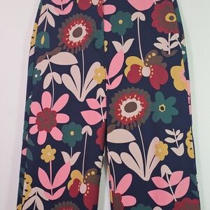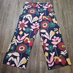 Make a bold statement with these stunning Boden wide-leg cropped pants in a vibrant retro floral print. Featuring a rich navy blue base with multicolor floral patterns in pink, red, mustard yellow, and green, these pants bring vintage charm with a modern silhouette. Made from a comfortable, quality cotton-blend fabric with just the right amount of stretch, they’re perfect for dressing up or down. Pair with a simple blouse or crisp white shirt for an effortlessly chic look.