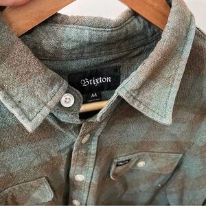 Brixton Olive and Brown Checkered plaid button down long sleeve Shirt