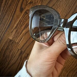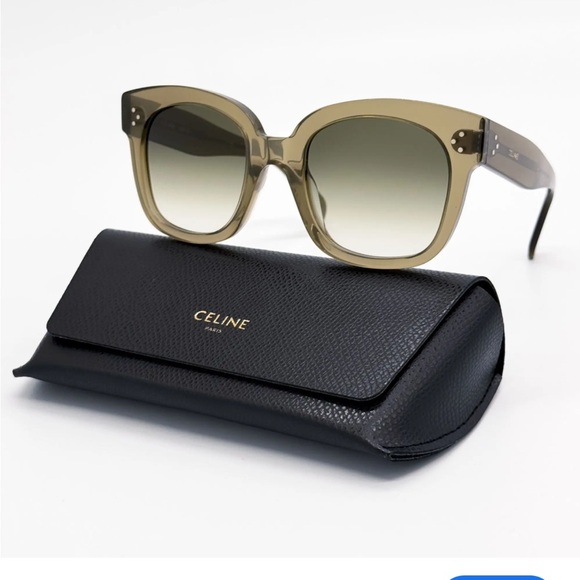 Stylish Celine sunglasses with an olive frame. Comes with a sleek black case.