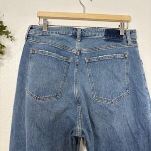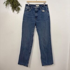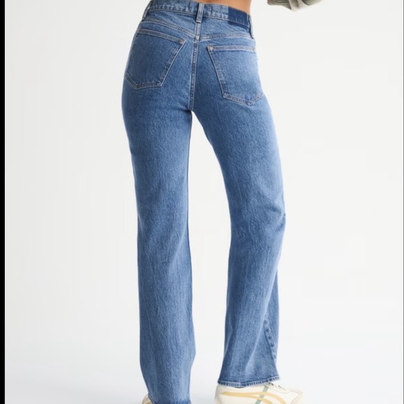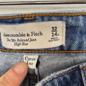 Keywords: Abercrombie, 90s jeans, relaxed fit, high rise, curve love, distressed denim, medium wash, straight leg, casual wear, weekend style, everyday denim, mom jeans