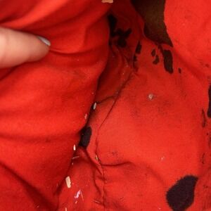 Market has bled inside the purse, when comes into contact with something it does leave a green residue from the marker. Fits kid or adult. Comes as is, marker staining was not treated.