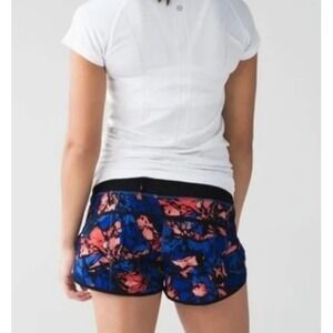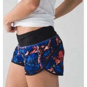Keywords: Lululemon shorts, athletic wear, running shorts, floral pattern, blue coral print, workout shorts, active shorts, athleisure, performance shorts, breathable, lightweight, gym wear, fitness apparel, sports shorts