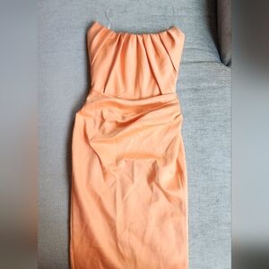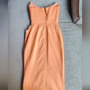 Turn heads with this stunning orange strapless dress. Perfect for any occasion, it offers a flattering fit and vibrant color.