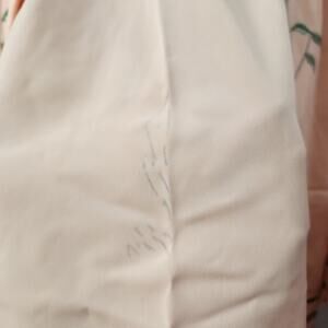 perfect condition overall, but has dark marks/color transfer on the back as shown.