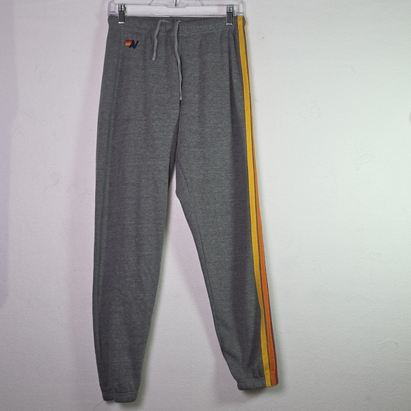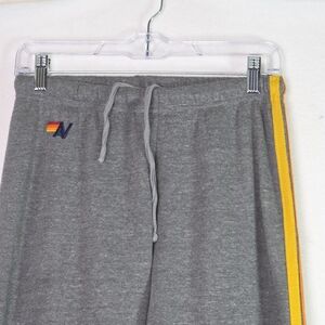 Cozy and stylish Aviator Nation sweatpants featuring their signature retro rainbow stripe down the side.