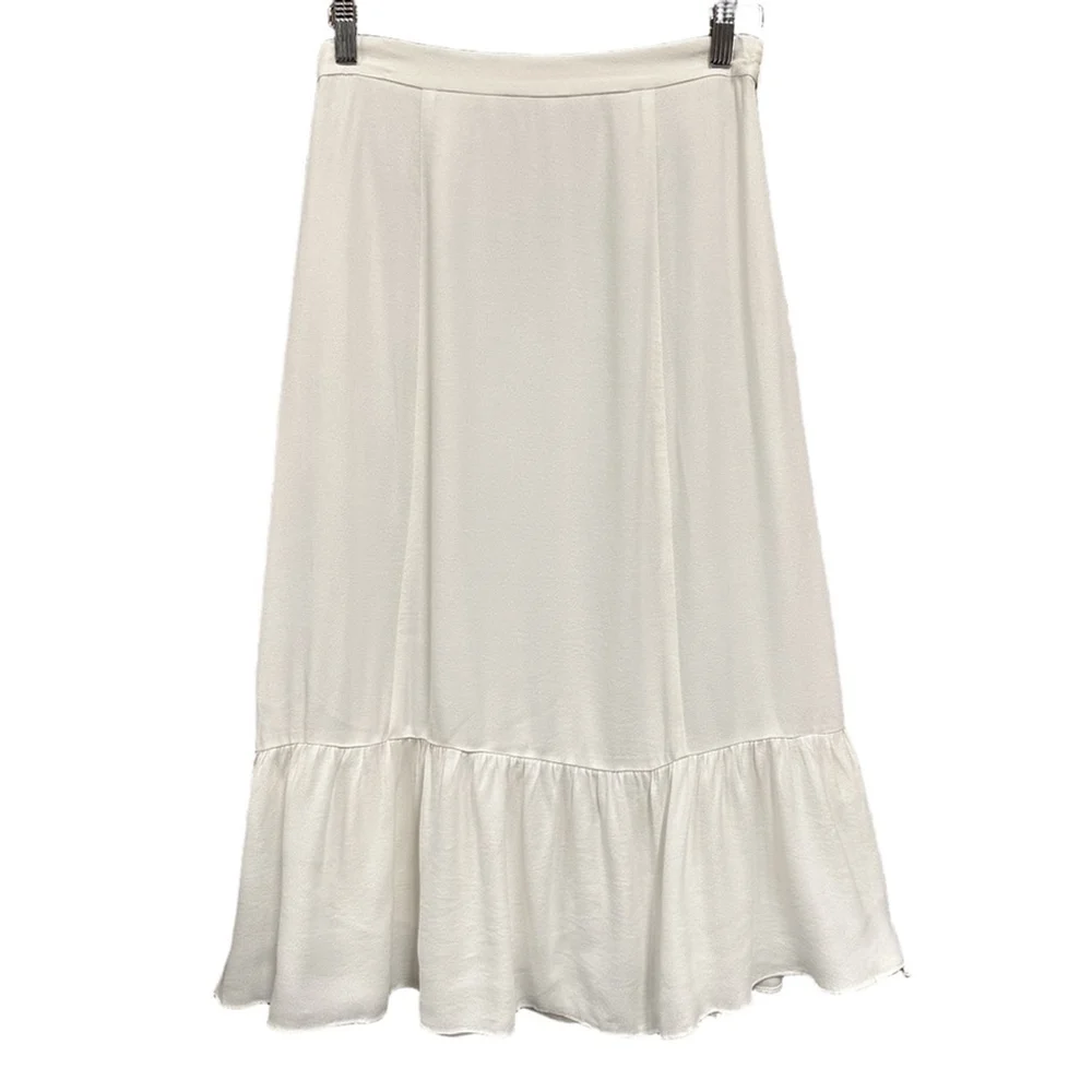 Aritzia Wilfred white A-line skirt with wide ruffle hem.