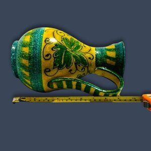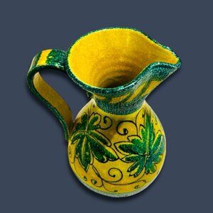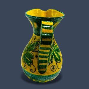 Vintage Italian Pottery Mancioli Raymor Jug Yellow Pitcher Vase. RARE! This item was purchased at an estate sale. This item is striking in person and the exquisite detail it has been lovingly been crafted with is readily apparent. See for yourself I took a ton of pictures. Great find that can now find its way into your home for a great price!