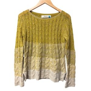 Keywords: ombre sweater, cable knit, wool blend, mohair blend, alpaca blend, textured knit, long sleeve, crew neck, neutral colors, cozy, fall fashion, winter wear, boho chic, casual top, outdoor, grandma sweater, knit, alpaca, kid mohair, Wool Luxury, Cozy, Sustainable