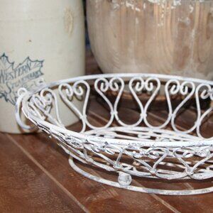 basket, dish, shabby chic, vintage, chippy, white, gray, French Country, farmhouse, cottage, distressed