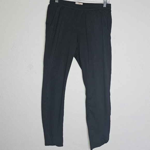Elevate your everyday style with the Marine Layer Allison Pants. These black ankle pants are perfect for any occasion, whether you're running errands or exploring the city. The pull-on closure and elastic waistband provide comfort and convenience, while the tapered leg style and front pockets add functionality.