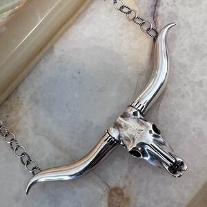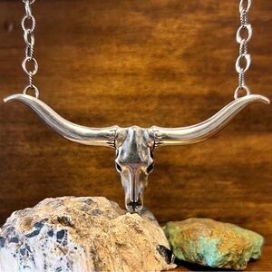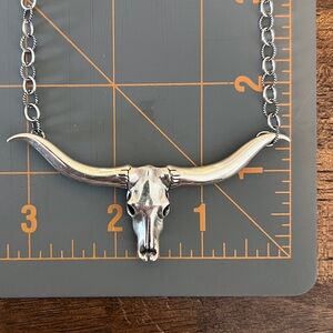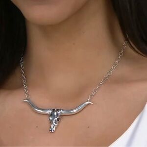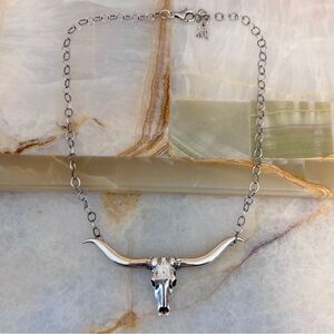 American West Carolyn Pollack LongHorn Skull Sterling Silver Necklace