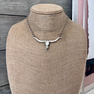 Long Horn Skull Necklace