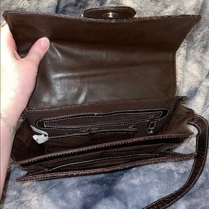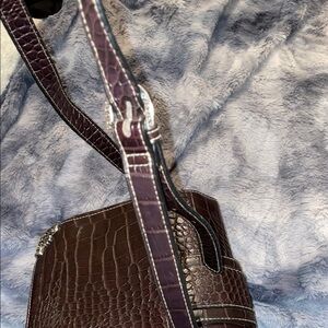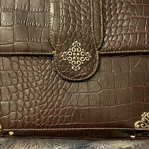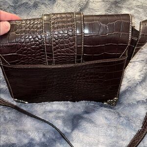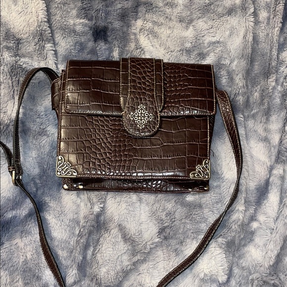 This stylish brown crossbody bag features a sophisticated crocodile-embossed design. Perfect for any occasion, it combines elegance with functionality.