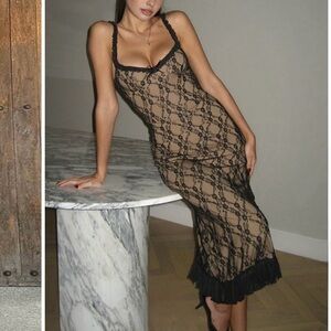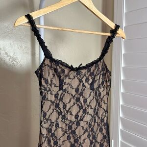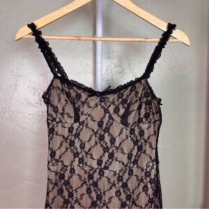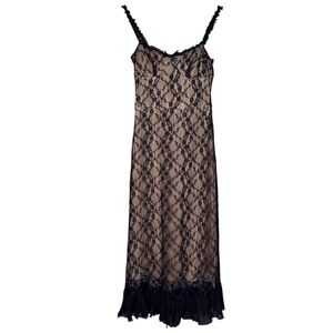 Commense Black Lace Midi Dress Nude Lined Stretchy Cami XS NWT