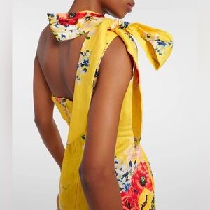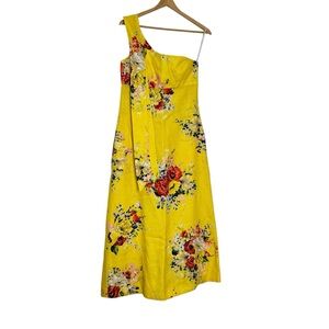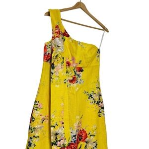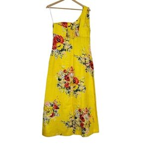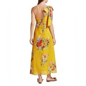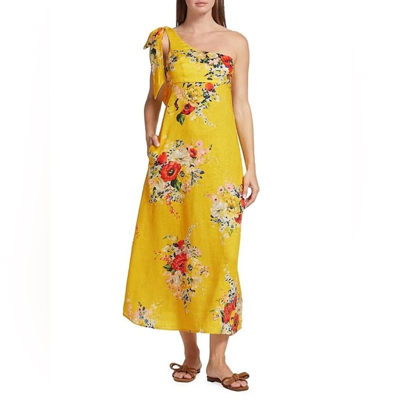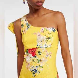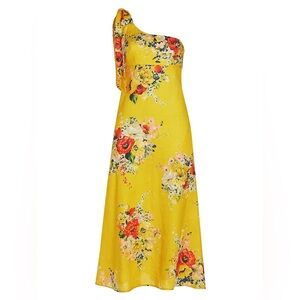 Zimmermann One-Shoulder Floral Linen Midi Dress Yellow