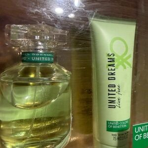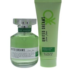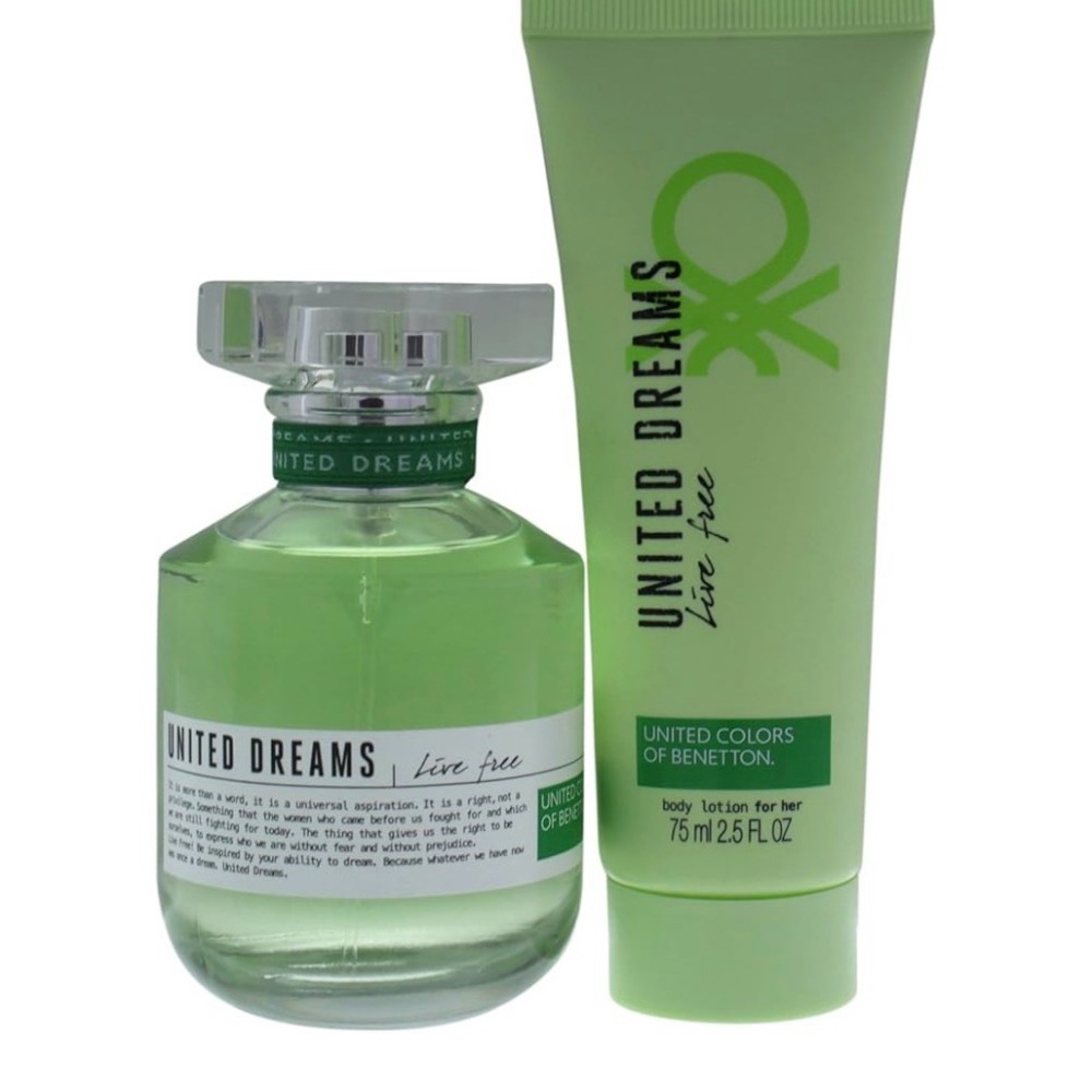 Revitalize with the United Dreams Live Free set. Light green body lotion and fragrance for a fresh feel.