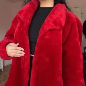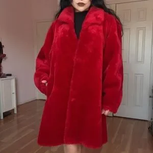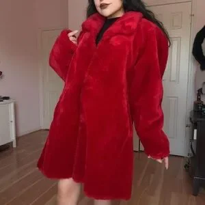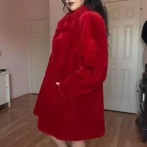 Rare bright red faux fur coat by Monterey • 2 hook and eyes down front • Soft black lining • A pocket at each side