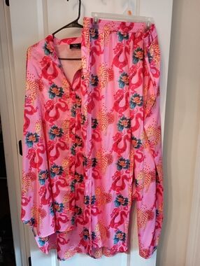 XL. 22 inches pit to pit. Color is like a pink/peach color.