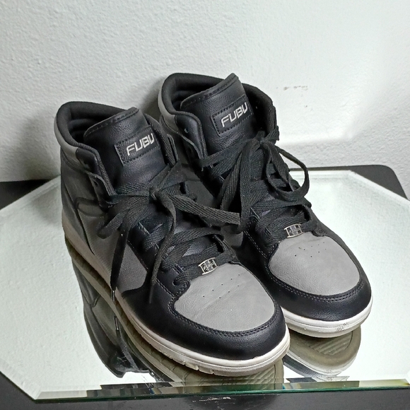 Elevate your look with FUBU sneakers. Stylish black and gray design. Perfect for any outfit.