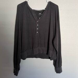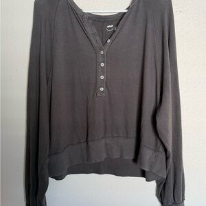 Aerie washed charcoal grey henley long sleeve top in Size Large.