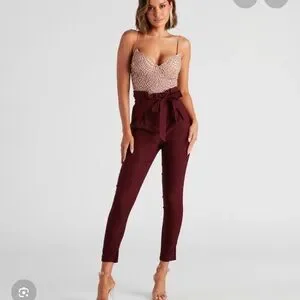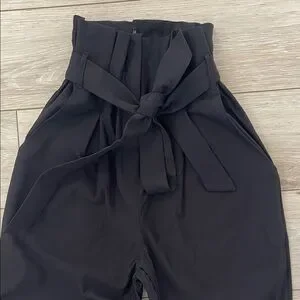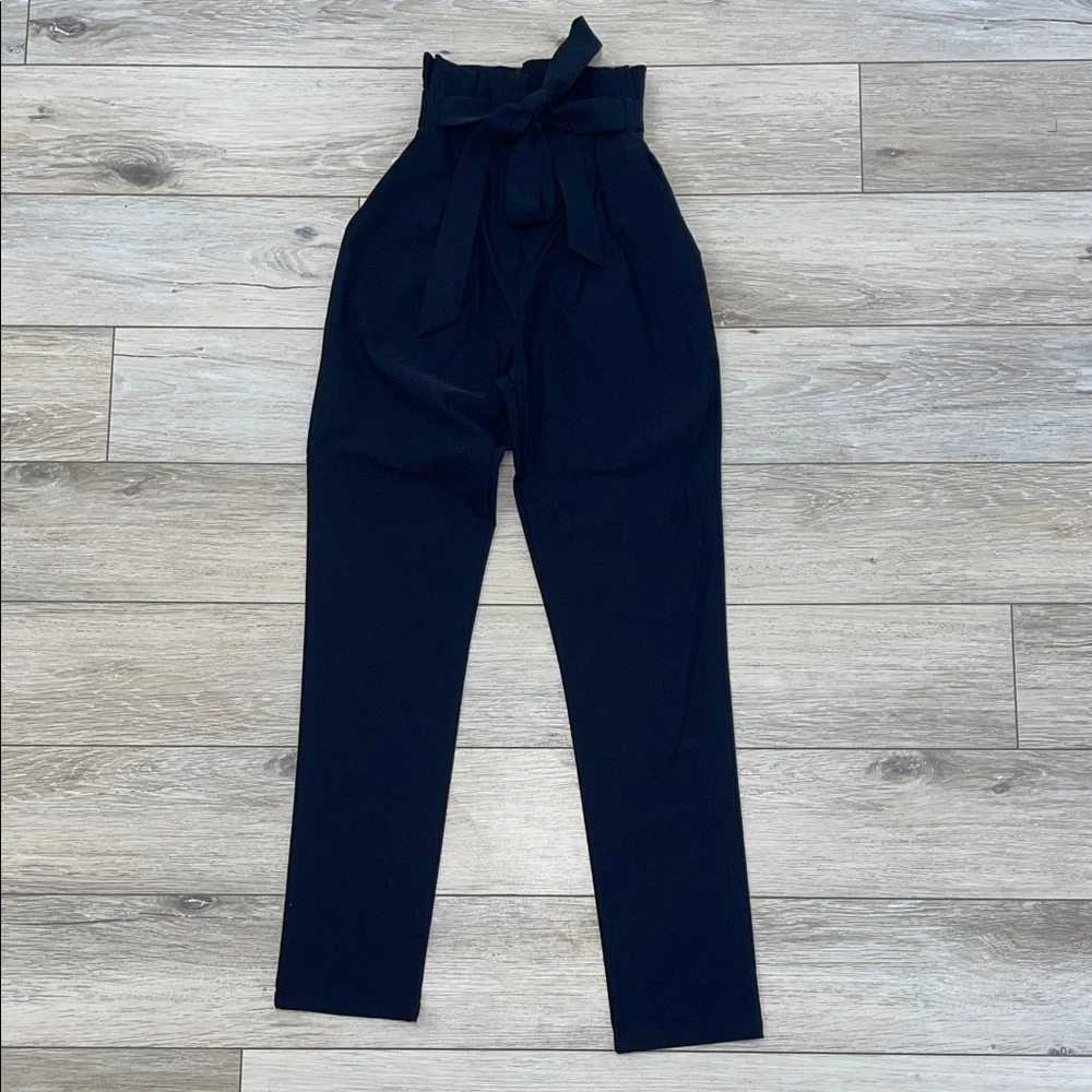 Elevate your style with these chic black high-waisted pants. Perfect for any occasion, they offer a flattering fit and a stylish tie waist.