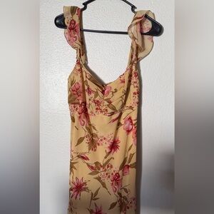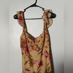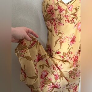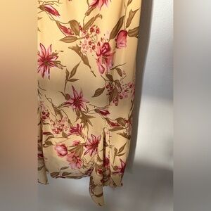Chic floral maxi dress in cream with vibrant pink accents. Ideal for any occasion.