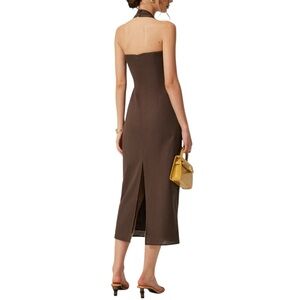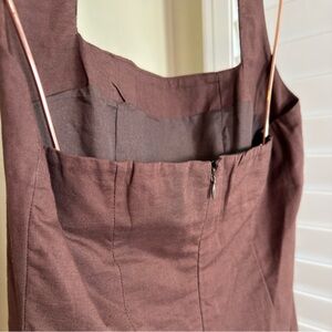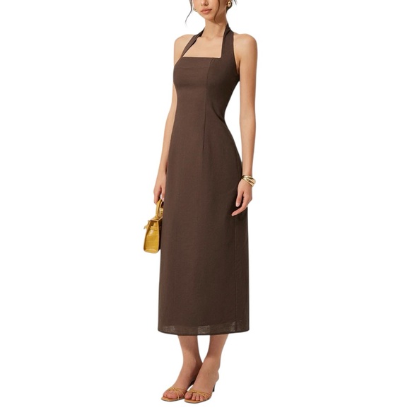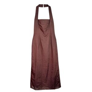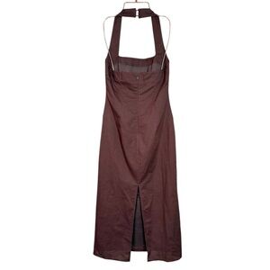 Commense Brown Linen Cotton Halter Open Back Midi Dress NWT