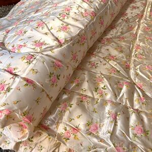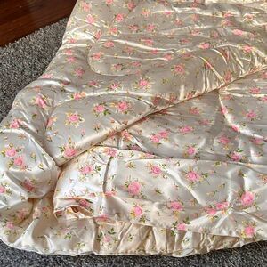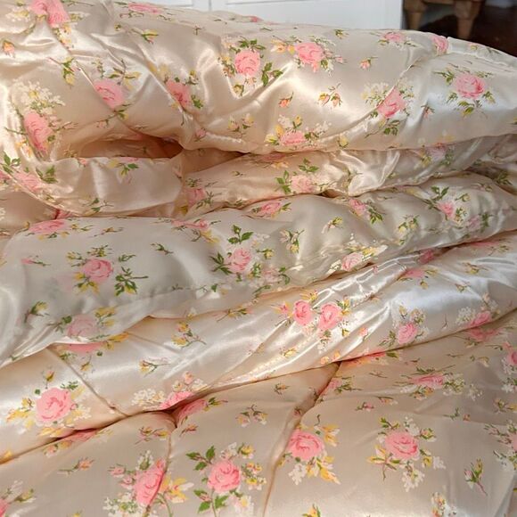 Beautiful vintage comforter with a plush, quilted construction and classic romantic cottage styling that instantly elevates a bedroom or guest space.