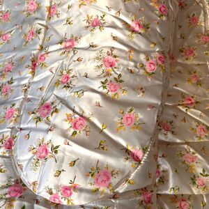 • Color: Ivory / champagne with pink & green floral