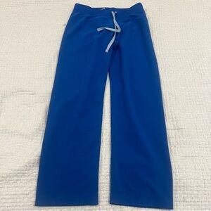 Comfortable, polished FIGS scrub pants in a vibrant royal blue shade. Designed for all-day wear with a straight-leg silhouette and adjustable drawstring waist.