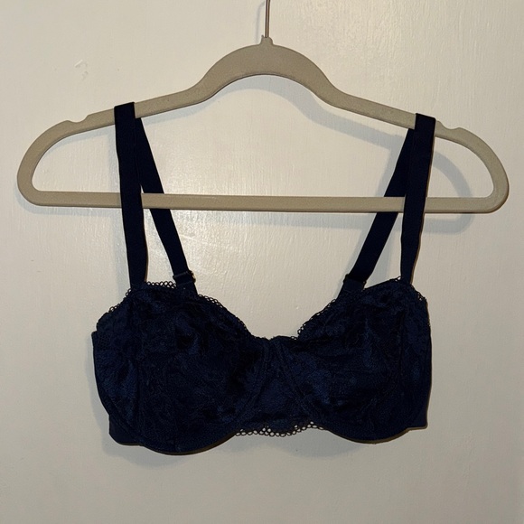 Worn once. EUC with no flaws! Smoke free home. Experience comfort and style with this elegant navy lace bra. Perfect for everyday wear.