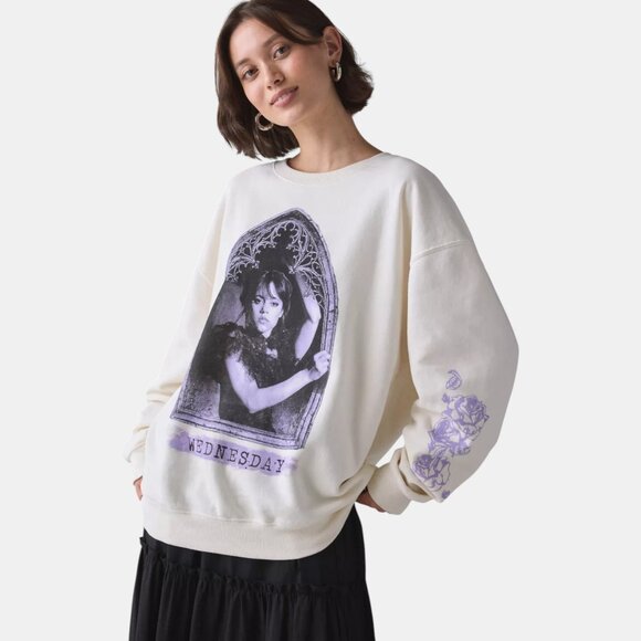 URBAN OUTFITTERS WEDNESDAY ADDAMS GRAPHIC CREW NECK PULLOVER SWEATSHIRT NWT SIZE XL