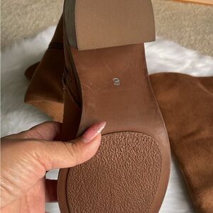 Chic over the knee design. Smooth tan finish. Ideal for versatile styling.