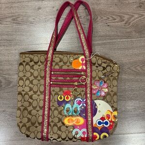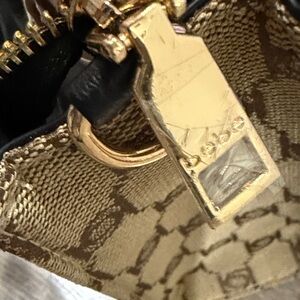 Elegant Bebe tote with signature logo pattern. Perfect for daily use. Stylish and functional.