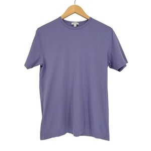 Keywords: Sunspel, mens t shirt, lavender tee, purple shirt, cotton tee, made in england, crew neck, short sleeve, basic tee, wardrobe staple, casual wear, designer tee, timeless